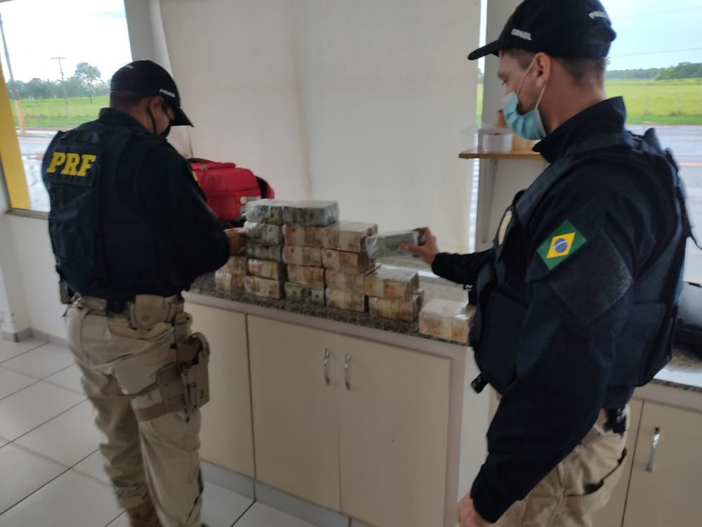 Um pedreiro de 46 anos foi preso na tarde desta terça-feira (26) pela Policia Rodoviária Federal (PRF) na BR 163, com duas malas cheias de cédulas de real e dólar. Ele estava em um ônibus que saiu do Rio de Janeiro para Campo Grande. O dinheiro estava embalados em pacotes de presente.