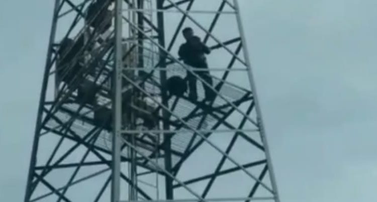 Neste momento, homem identificado como Alcides Meireles Morais, de 43 anos, está em cima da torre do estádio 2 de Maio, em Pedro Juan Caballero, no Paraguai. Essa é a terceira vez que ele sobe no local.