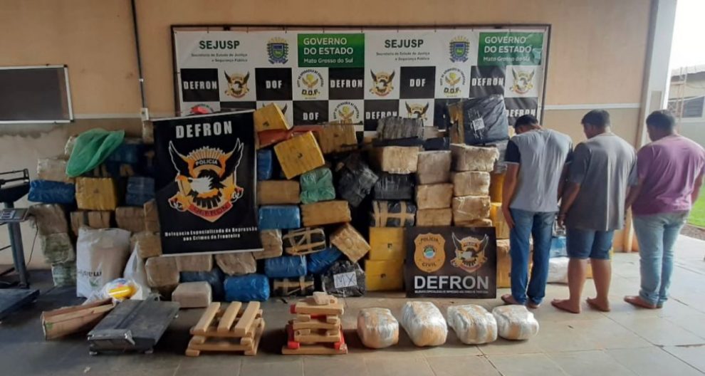 Polícia Civil, por meio da Delegacia Especializada de Repressão aos Crimes de Fronteira-DEFRON, apreendeu 3 toneladas 223 quilos de maconha e 20 quilos e 600 gramas de skank em depósito em Ponta Porã. Os policiais também apreenderam um caminhão, um automóvel, duas espingardas e efetua a prisão de três pessoas.