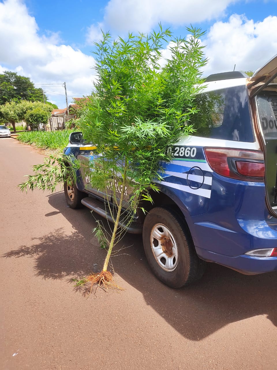 Policiais militares da 9ª Companhia da Polícia Militar de Dourados, apreenderam na manhã deste sábado um grande pé de maconha que estava plantado em uma terreno baldio no final da rua Martim Ebehart no Parque Alvorada.
