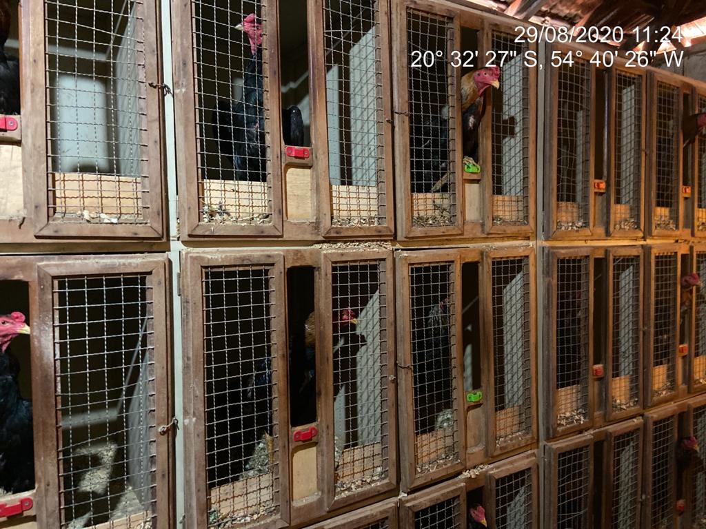 A equipe da PMA verificou no local que os animais eram mantidos em gaiolas de madeira e algumas de ferro extremamente apertadas, com restrição de movimentos, privação de luz solar e circulação aérea inadequada, o que, por si só, caracteriza-se maus-tratos. 72 animais galos domésticos da espécie galo-índio (Gallus gallus domesticus) apresentavam diversos ferimentos na crista e peito, bem como todas as aves apresentavam-se mutiladas, com as esporas cortadas e foram apreendidas. Todas as gaiolas também foram apreendidas.