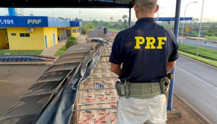 Na manhã desta terça-feira (21), a PRF (Polícia Rodoviária Federal) apreendeu 600 mil maços de cigarros contrabandeados do Paraguai, transportados em um caminhão roubado, no município de Eldorado.