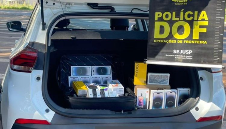 Policiais do DOF (Departamento de Operações de Fronteira) apreenderam na sexta-feira (21), uma carga de celulares e outros produtos paraguaios, avaliada em R$ 350 mil, na MS-164, zona rural de Ponta Porã. O material era transportado em um veículo GM Tracker, locado.