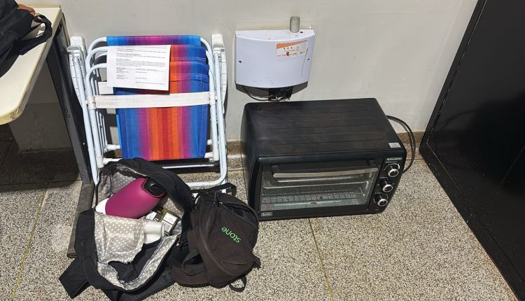 Com o casal, a Polícia Militar encontrou diversos objetos, entre eles uma garrafa térmica, um chuveiro elétrico, duas cadeiras, um forno elétrico, ferramentas (como chave de fenda e chave de boca), cinco óculos de grau, uma mochila, uma jarra de vidro e algumas peças de semijoia.
