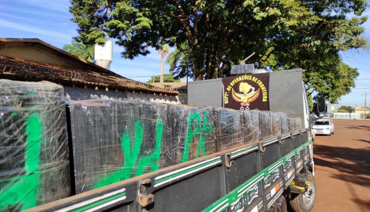 O entorpecente estava distribuído em fardos na carroceria do caminhão Ford Cargo.