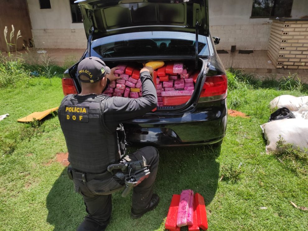 Policiais do DOF (Departamento de Operações de Fronteira) apreenderam ontem (7), um veículo VW Voyage, carregado com 341 quilos de maconha e mais dois quilos de Skank, durante policiamento ostensivo em Coronel Sapucaia.