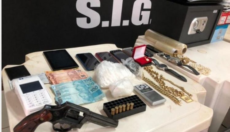 O primeiro mandado de prisão preventiva foi cumprido em face de homem com 42 anos, investigado pelos crimes de tráfico de cocaína, associação para o tráfico e lavagem de dinheiro. Durante o cumprimento do mandado de prisão e de busca em apreensão na casa do suspeito, ainda foram encontradas uma arma de fogo calibre 38, com 6 munições intactas, 100 gramas de haxixe, 430 gramas de cocaína, uma balança de precisão, uma prensa artesanal utilizada para o embalo de droga, aproximadamente 172 gramas de ouro avaliadas em R$ 55 mil reais e R$ 472 em dinheiro, além de outros objetos de valores econômicos elevados e incompatíveis com a atividade dos investigados.