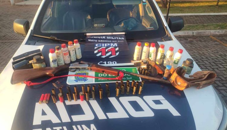 Ao atender ocorrência de violência doméstica contra uma mulher de 44 anos, que era espancada pelo ex-namorado, de 37, na noite de domingo (10/9), policiais militares prenderam armas, munições, pólvora e chumbo na chácara onde o autor reside.