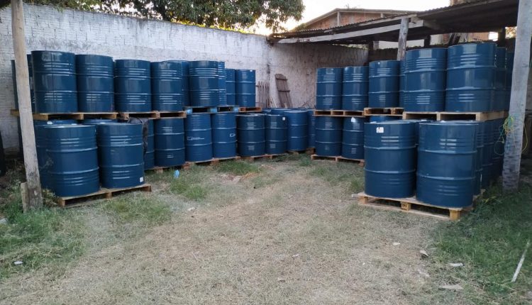 A Polícia Federal apreendeu ontem (15), em estacionamento localizado no bairro Aeroporto, em Corumbá, 207 barris de Acetato de Etila, produto químico de venda controlada pela Polícia Federal por ser utilizado na produção de cocaína. A partir de denúncia anônima, policiais federais realizaram diligências pela região, quando avistaram no estacionamento os barris de 200 litros armazenados sobre paletes, prontos para serem carregados.