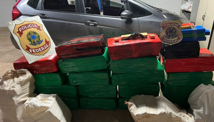 A Polícia Federal apreendeu na tarde desta terça-feira (25)l, mais de 500 quilos de maconha e uma arma de fogo. Policiais Federais abordaram, na rodovia BR 463, próximo ao trevo com a Rodovia MS-386, um veículo Honda Fit.