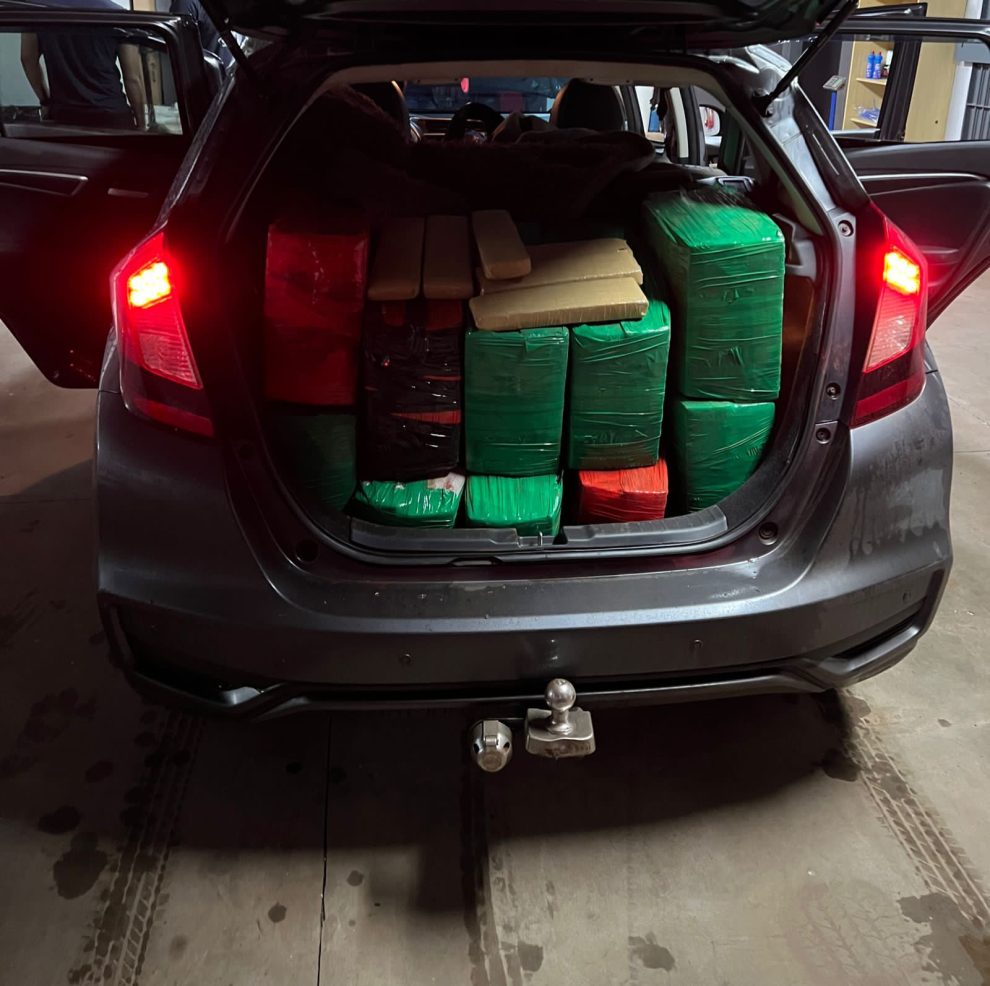 Durante as buscas, foram encontrados cerca de 550 quilos de maconha e um revólver calibre 32 com diversas munições. Na Delegacia de Polícia Federal de Ponta Porã, o motorista do veículo foi autuado em flagrante de tráfico internacional de drogas e de arma de fogo.