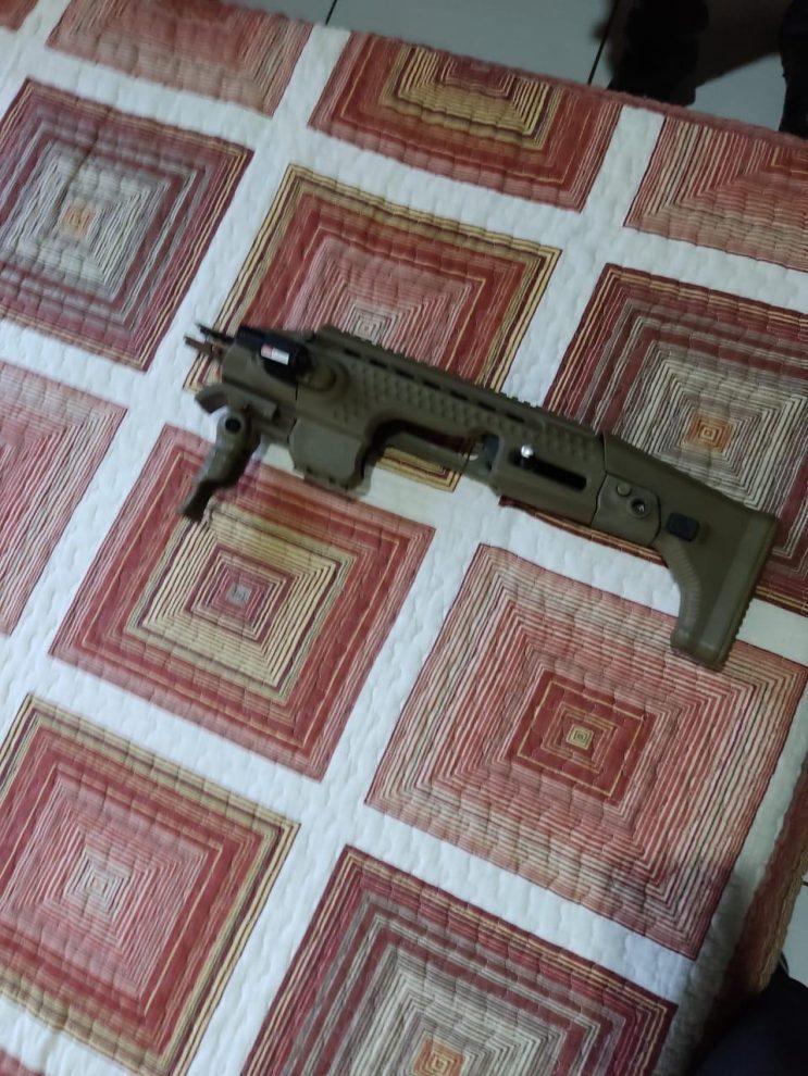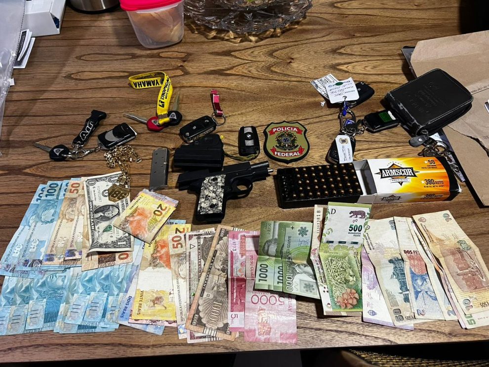 Uma pessoa foi presa em flagrante por posse ilegal de arma de fogo. Uma metralhadora, uma pistola e munições foram apreendidos. Os nomes dos investigados na operação não foram divulgados pela Polícia Federal.