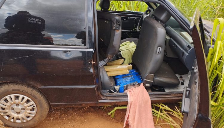 Na tarde desta sexta-feira (31), a Polícia Militar apreendeu 146 quilos de maconha no Distrito de Nova Itamarati, em Ponta Porã. A droga foi encontrada dentro de um veículo que havia saído da pista e ficado preso em um barranco.