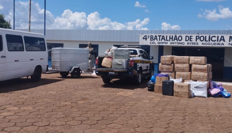 A Polícia Militar apreendeu, na tarde deste domingo (23), uma grande carga de mercadorias contrabandeadas do Paraguai durante uma abordagem na Avenida das Flores, em Ponta Porã. A ação faz parte das fiscalizações rotineiras na região de fronteira, que visam combater o contrabando e o descaminho.