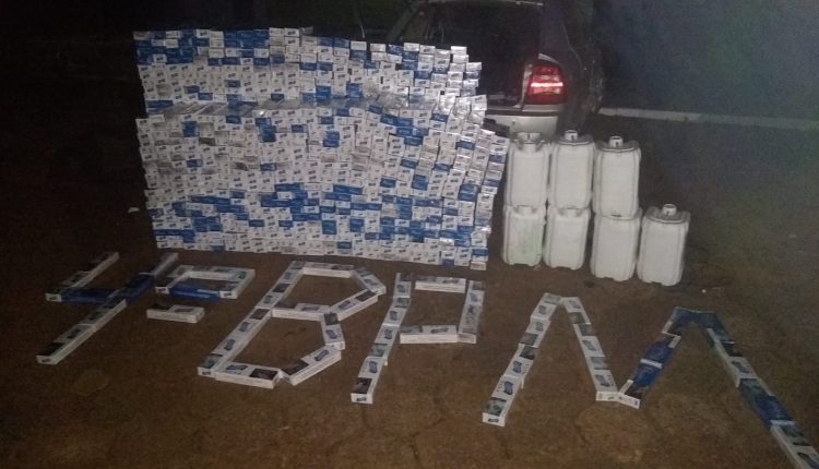 No interior do automóvel, foi localizada grande quantidade de cigarros e agrotóxicos contrabandeados. O motorista não foi encontrado.