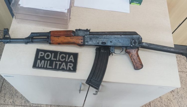Por volta de 12h15 desta quinta-feira (18), policiais militares do 4º BPM realizaram a abordagem a um ônibus interestadual de transportes de passageiros, e durante a vistoria, encontraram no compartimento oculto de bagagens, uma mala de material plástico, na cor dourada a qual, ao ser inspecionada, verificou-se a existência de um fundo falso onde estava escondida uma arma de fogo do tipo FUZIL 5.56X45mm.
