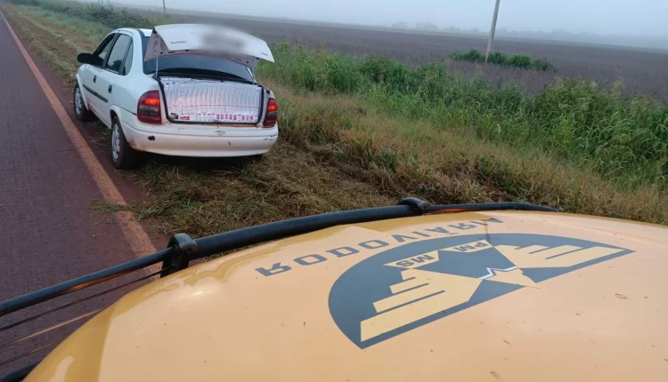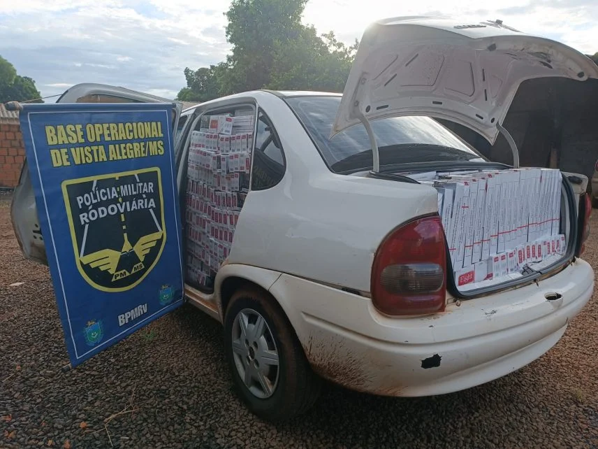 A apreensão ocorreu durante fiscalização de trânsito na MS 164, em Vista Alegre, quando os militares deram ordem de parada aos veículos GM/Corsa, placas de Campo Grande.