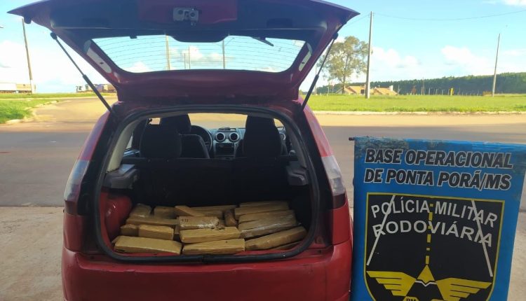 Policiais da Base Operacional de Ponta Porã, da Polícia Militar Rodoviária, apreenderam na tarde de ontem (25), 104 quilos de maconha que estavam sendo transportados em um Ford/Fiesta, com placas de São Paulo (SP). O carro era conduzido por Wellington Santos de Melo de 28 anos.