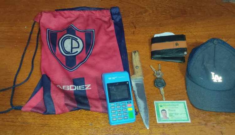 Ao ser localizado e preso o indivíduo carregava uma mochila preta, com o logotipo do Clube Cerro Porteño, contendo várias roupas, um molho de chave, faca e uma máquina de pagamento com cartão do Mercado Pago, objetos reconhecidos por uma vítima de assalto.