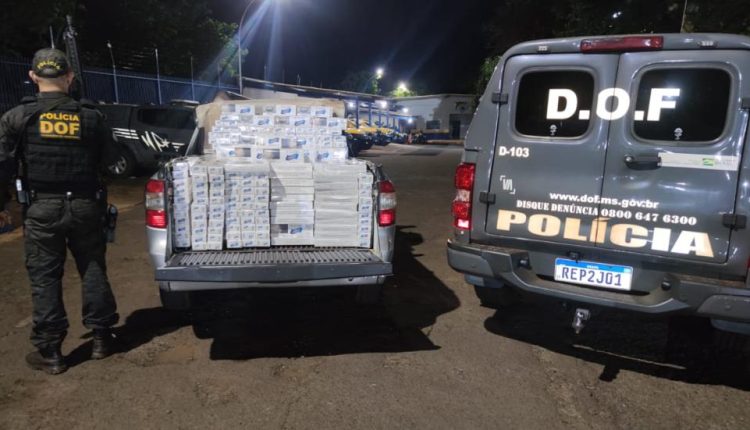 No interior e carroceria da Montana foram localizados diversos pacotes de cigarros que segundo o próprio autor, foram comprados em Pedro Juan Caballero para revender em Coxim.