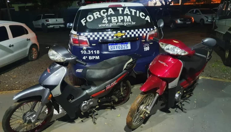 A PM (Polícia Militar) recuperou na madrugada de domingo (27), duas motocicletas com registro de roubo/furto, no residencial Ponta Porã, em Ponta Porã. O boletim de ocorrência foi registrado por uma mulher de 24 anos.