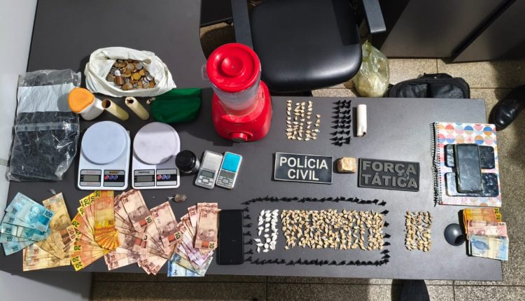 Já no terceiro apartamento, localizado no Bloco O, uma mulher foi abordada e flagrada com porções de crack. Após autorização para buscas no imóvel, os policiais localizaram mais entorpecentes ocultados no interior do apartamento, além de dinheiro, aparelhos celulares e um caderno com anotações relacionadas ao tráfico de drogas.
