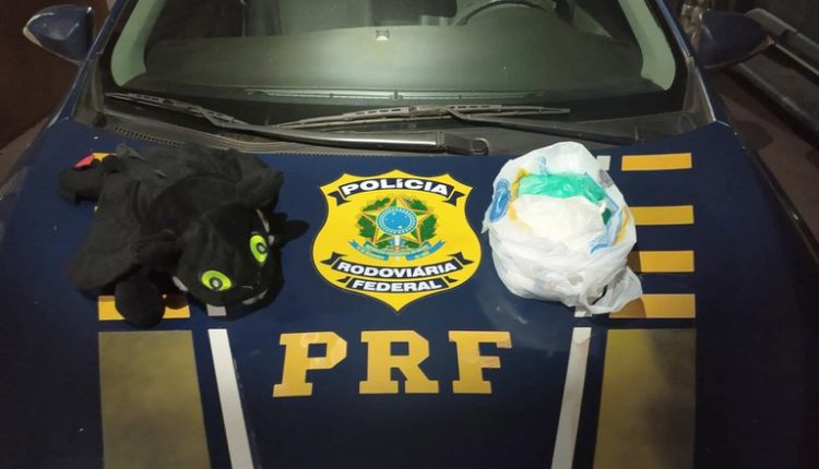 Durante entrevista aos passageiros, a equipe desconfiou do nervosismo apresentado por um deles. Após vistoria na mochila que ele levava, os policiais encontraram um brinquedo de pelúcia e dentro, a cocaína.