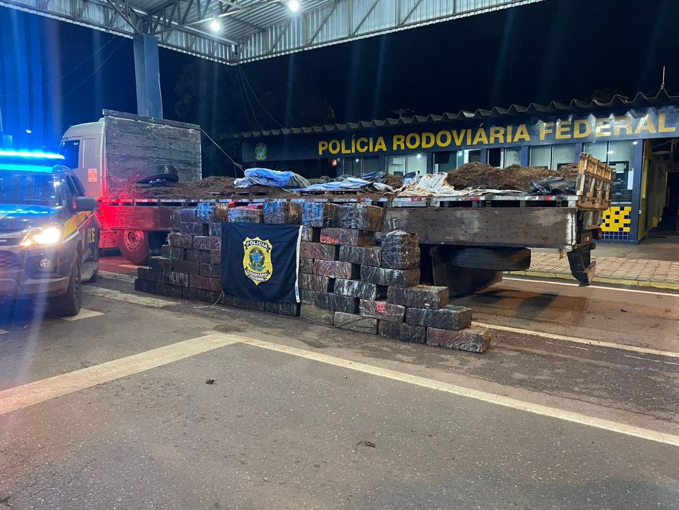 Diante do comportamento, a equipe da PRF, suspeitando que pudesse haver alguma ilegalidade na carga, iniciou a vistoria na carroceria do caminhão. Durante a fiscalização, foram encontrados por baixo da carga de grama, diversos fardos de maconha. Questionado sobre o material, o condutor assumiu que se tratava da droga, que a carregou em Dourados, com destino a Cuiabá, Mato Grosso e não informou quanto receberia pelo transporte do ilícito ou forneceu outros detalhes.