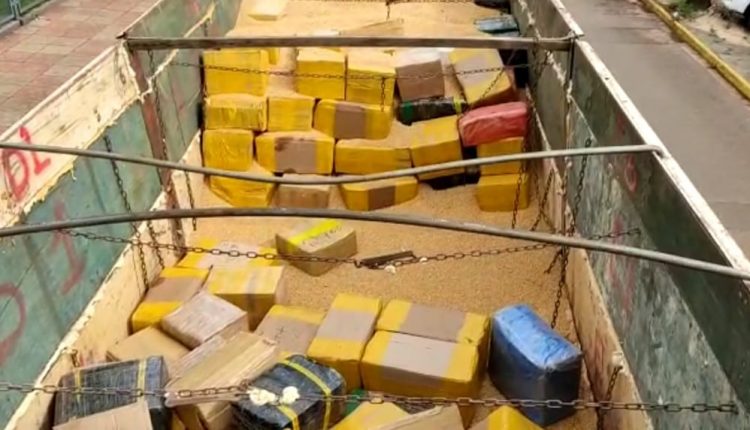 A droga estava sendo transportada em uma carreta com placas de São Paulo carregada com cereais. Os agentes desconfiaram do motorista no momento da apresentação da nota fiscal e em uma vistoria na carga, acabaram encontrando centenas de fardos de maconha.