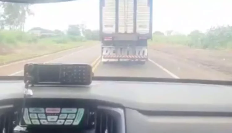 Conforme o áudio da pessoa que gravou as imagens, foram feitos ao menos três disparos contra o veículo na tentativa de cessar a fuga, porém, o condutor não obedecia à ordem de parada, inclusive tentava jogar o caminhão para cima da viatura policial.