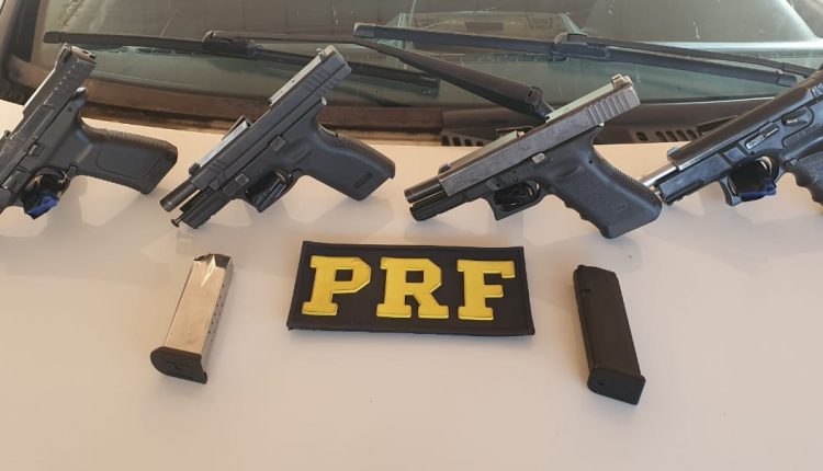 Dentro, estavam escondidas quatro pistolas calibre 9 milímetros, duas com as numerações de identificação raspadas, e dois carregadores avulsos.