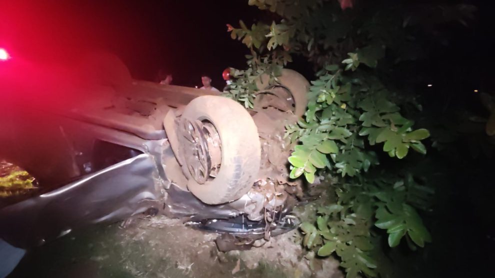 O produtor rural saiu da pista capotou a Hilux e bateu em algumas árvores e um coqueiro com a caminhonete ficando com as rodas para cima. O acidente ocorreu nas proximidades da Lanchonete Sossego.