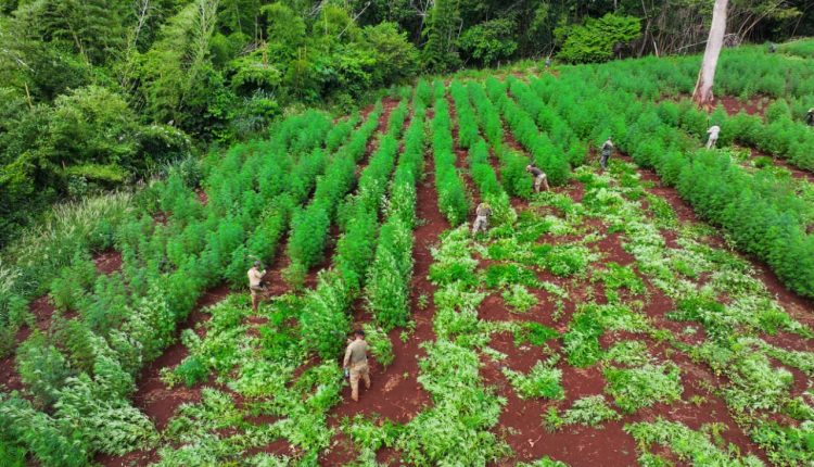 Uma ofensiva estratégica de grande escala contra o narcotráfico resultou na destruição de quase 60 hectares de plantações clandestinas de maconha no distrito de Piray, no município de Capitán Bado, região de fronteira com Coronel Sapucaia.