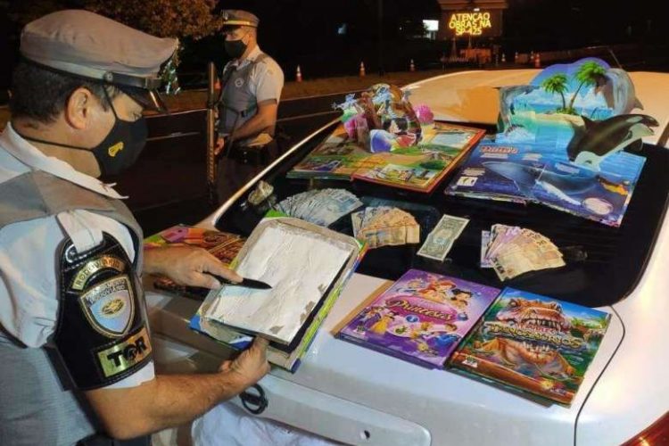 No veículo, conforme o portal Agora São Paulo, havia dois casais e uma criança. Durante a vistoria, os policiais encontraram dezenas de livros infantis e ao manusearem os exemplares, descobriram que sob as capas das edições, estavam as porções da droga.