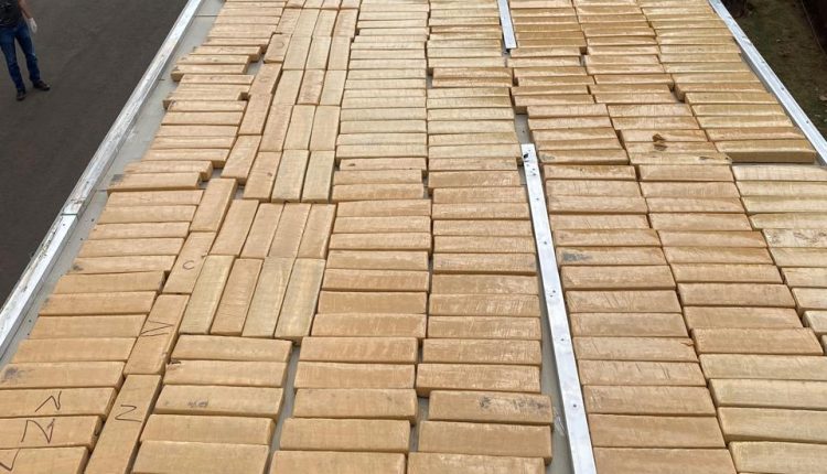 A PRF (Polícia Rodoviária Federal), apreendeu na madrugada de domingo (16), um carregamento de maconha transportado em fundo falso montado no teto de um caminhão baú, na BR-376, em Ivinhema.