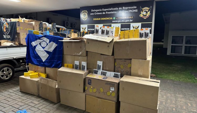 Ação conjunta da Receita Federal com a Defron (Delegacia Especializada de Repressão aos Crimes de Fronteira) apreendeu na noite desta quarta-feira (25/6), naBR 463, em Ponta Porã, 4 mil celulares de origem estrangeira importados clandestinamente do Paraguai.