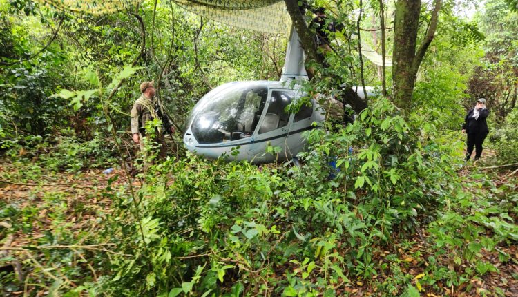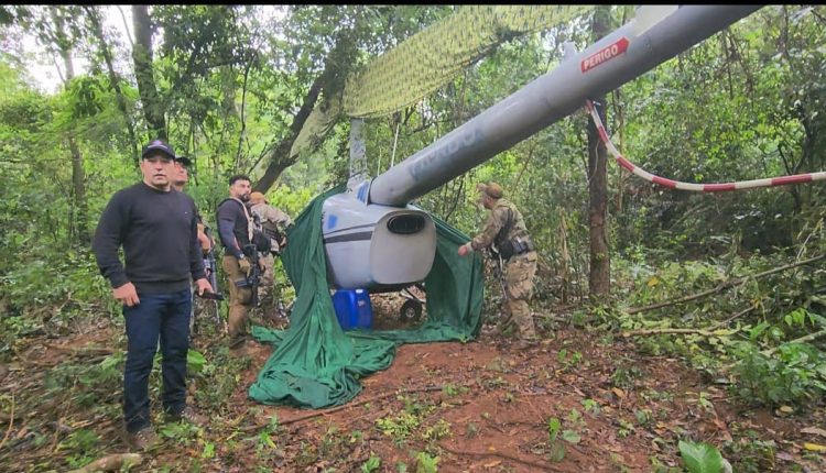 Agentes Especiais da Senad (Secretaria Nacional Antidrogas) apreenderam um helicóptero Robson 66 em uma mata na Colônia Fortuna, distrito de Zanja Pytã, no Departamento de Amambay.