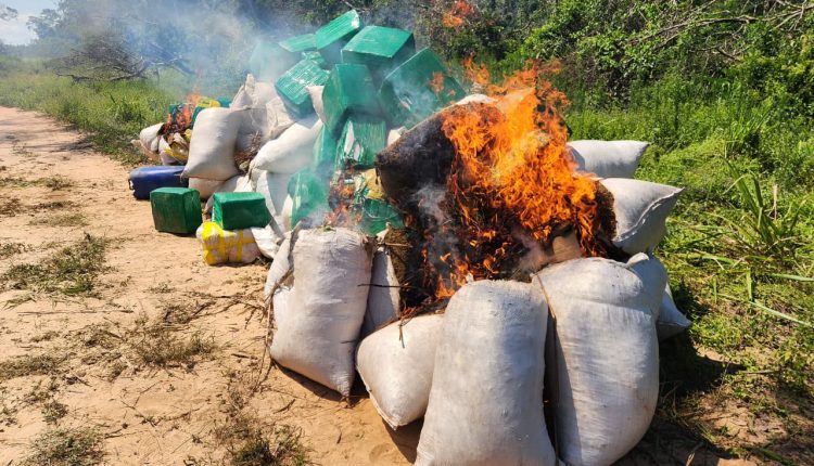 No local, foram destruídos 1.600 quilos de maconha prensada distribuídos em 76 fardos, além de 1.250 quilos da mesma droga acondicionados em 52 pacotes adicionais. A operação também resultou na eliminação de 4.800 quilos de maconha picada armazenados em 300 sacos e 240 quilos de sementes de maconha distribuídas em seis galões de 40 litros. No total, 7.890 quilos de drogas foram destruídos.