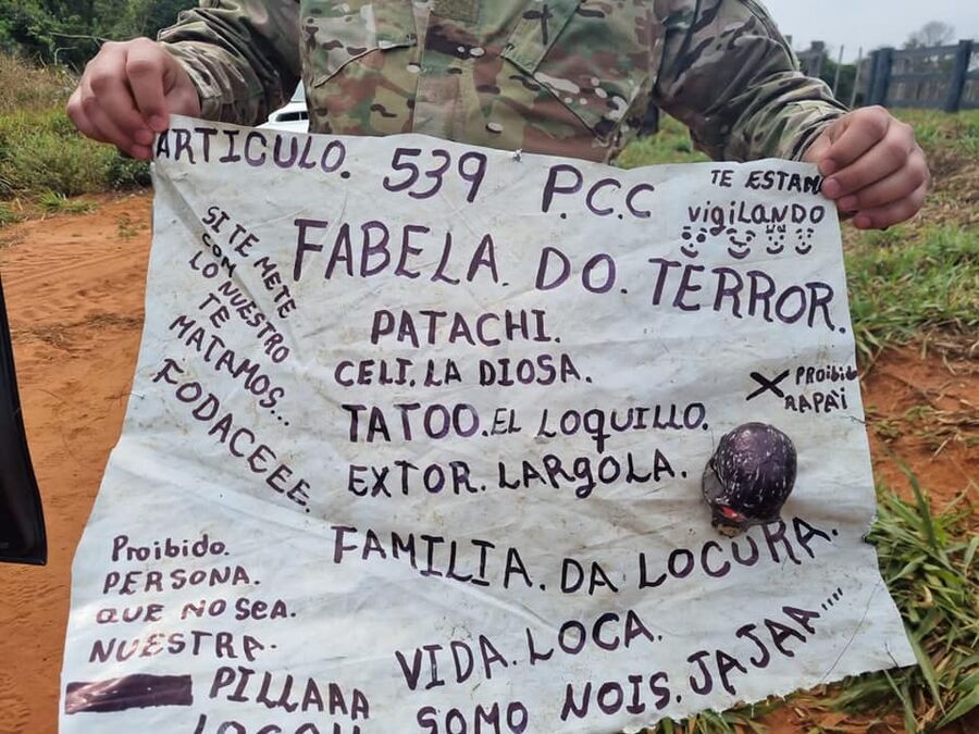 Durante as ações, também foram encontrados cartazes escritos por supostos integrantes da facção. Em um deles, há uma frase de ameaça de morte para quem se meter no caminho dos traficantes.