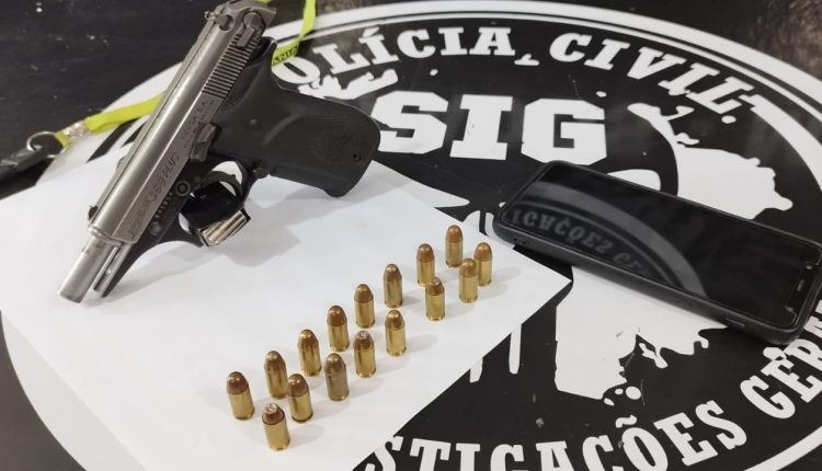 Com ele, os policiais apreenderam uma pistola calibre 380, usada no crime.