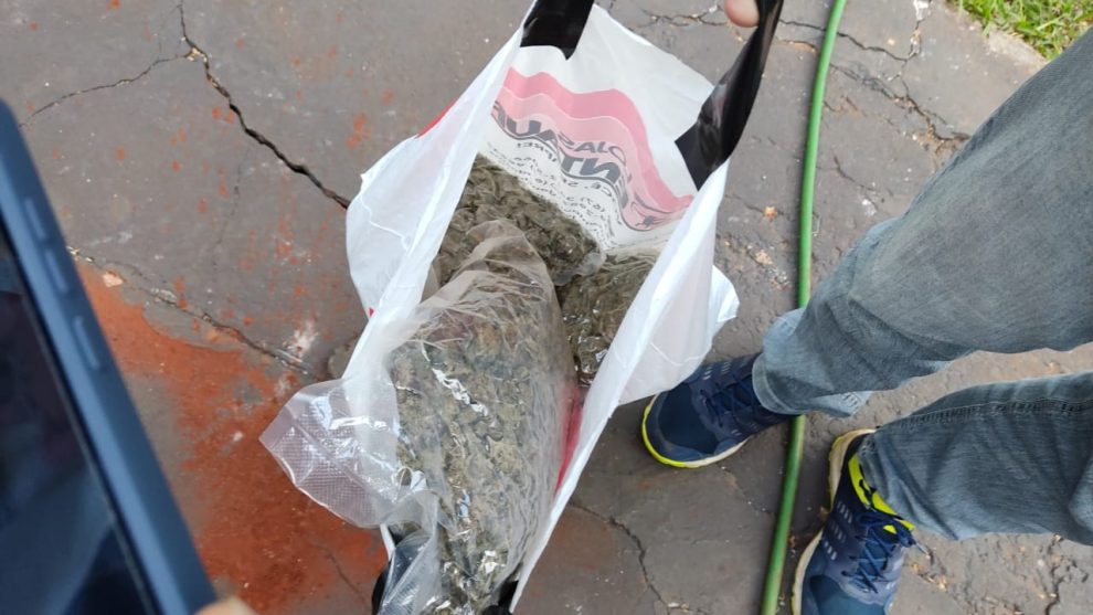 Foi feito acompanhamento e ao parar na praça do bairro Parque Alvorada, os agentes fizeram a abordagem e encontraram uma sacola com três pacotes de ‘bucha’ de maconha e um pedaço de haxixe.