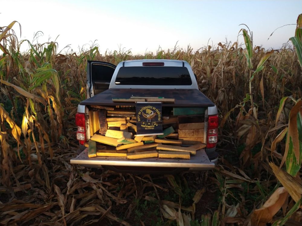 Três homens foram presos e outros conseguiram fugir do cerco policial que apreendeu nesta quinta-feira (23), quase duas toneladas de maconha. A droga estava sendo trazida da fronteira em uma caminhonete S 10 prata com placas falsas de Nova Andradina e as originais de Belo Horizonte (MG) que foi abandonada em um milharal ás margens de uma estrada vicinal em Laguna Carapã.