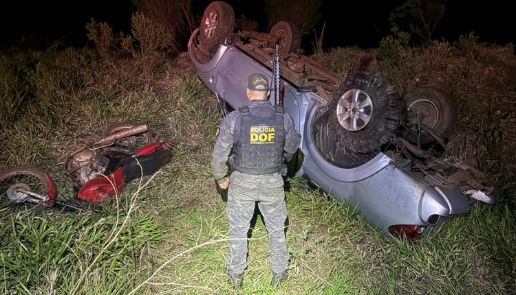 Dois homens, de 18 e 28 anos, foram presos e um adolescente de 17, apreendido pelo DOF (Departamento de Operações de Fronteira) após tentarem fugir e capotarem com uma caminhonete MMC Triton, furtada no estado de São Paulo. A ação aconteceu nesta quarta-feira (23/10), em Iguatemi.