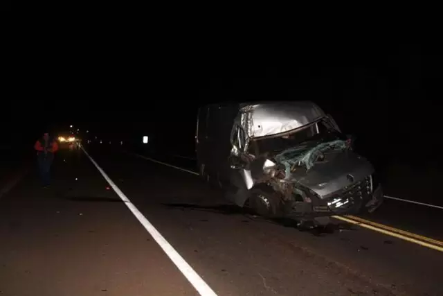 Motorista de uma van, de 39 anos, ficou ferido após bater em uma carreta na BR-163, em Nova Alvorada do Sul, na noite de domingo (14/7).