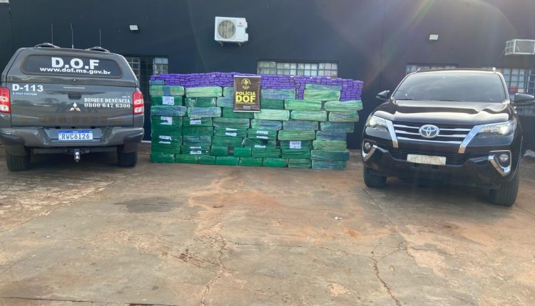 Policiais do DOF (Departamento de Operações de Fronteira) apreenderam na terça-feira (27/2), na MS-386, em Amambai, um veículo Toyota SW4, preta, carregada com 2.020 quilos de maconha distribuídos em 51 fardos.