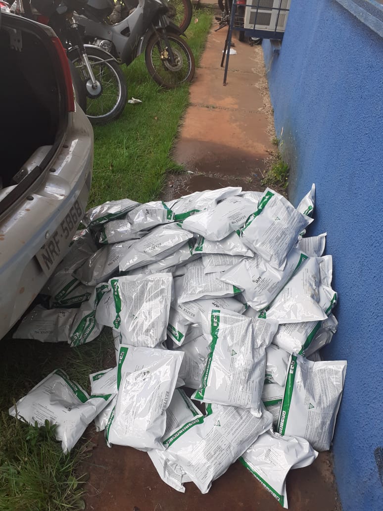 Na manhã desta segunda-feira (28), a Polícia Militar de Ponta Porã apreendeu na BR-164, saída para Antônio João, um carro Renault Symbol com 115 pacotes de inseticidas de origem chinesa.