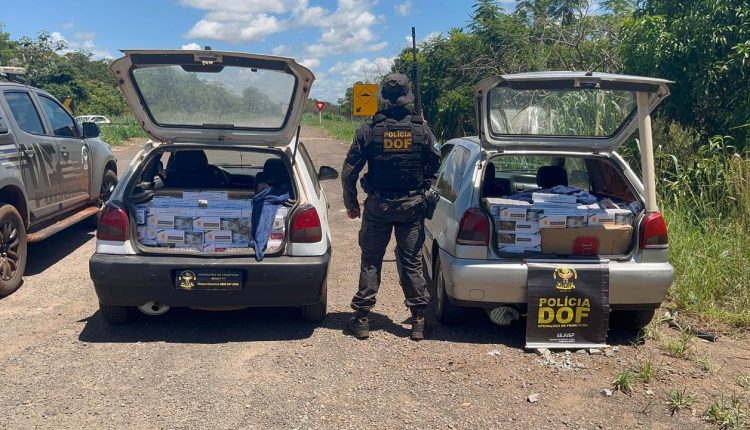Policiais do DOF (Departamento de Operações de Fronteira) apreenderam um veículo VW Gol branco e um VW Gol cinza, ambos carregados com mil pacotes de cigarros, na MS-480, área rural de Anaurilândia.