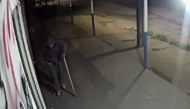 Nem mesmo as muletas impedem um homem, ainda não identificado, de praticar furtos em comércios no município de Ponta Porã.