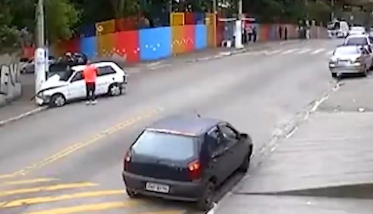 O Fit Uno bateu num poste perto da escola infantil onde as crianças estudavam.