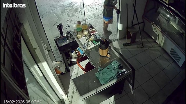 As imagens são do sistema de monitoramento do local e mostra “Microfone” forçando a porta para abrir e adentrando em seguida. Depois, ele vai até o caixa e furta R$ 200 em espécie e pouco tempo depois deixa o estabelecimento – veja o vídeo no final da matéria.